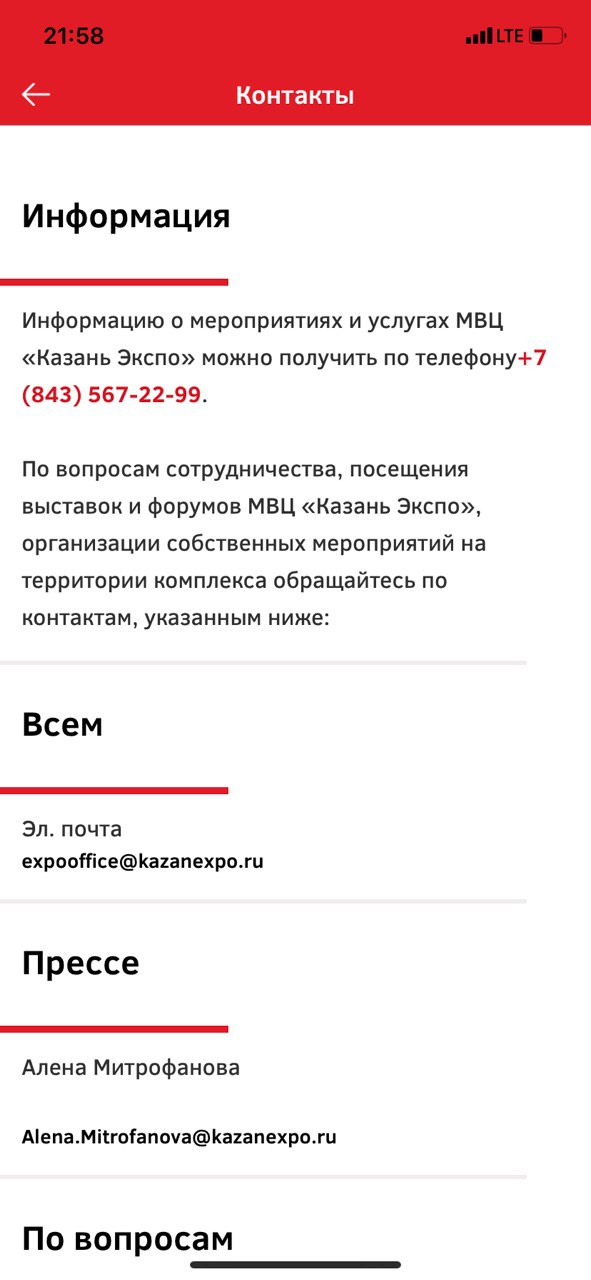 Перейти на главнуюПо заказу ООО Выставочная Компания мы разработали приложение с помощью которого можно отслеживать все мероприятия на площадке и активно учавствовать в них. Так как корпоративный сайт компании и система работами с клиентами (CRM) были реализованы на системе Битрикс, было принято решение интегрировать приложение с единой системой. После доработки необходимых услов Битрикса мы так же реализовали api на стороне сервреа. Приложение было реализовано в рекордные сроки - 2 недели. С помощью приложения пользователи могли найти мероприятия, проводимые на площадке KazanExpo и в городе, зарегистрироваться на нем и изучать всю программу данного мероприятия. В рамках одной сессии была разработана возможность задать вопросы модератору и получить презентационный материал.
